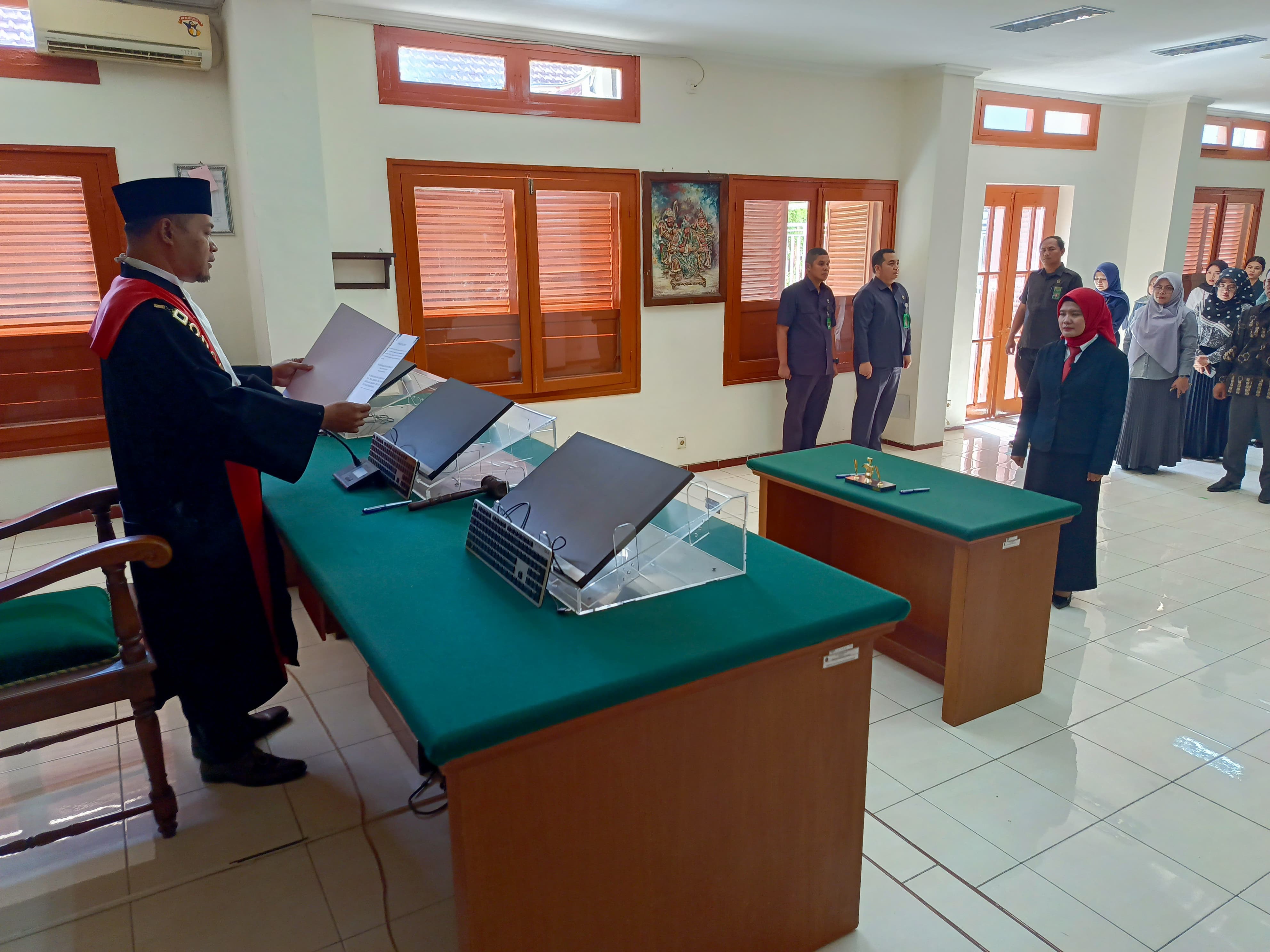 Pasuruan, 28 Mei 2024 - Ketua Pengadilan Negeri Pasuruan Bapak Tri Margono, SH., melakukan Pelantikan dan Pengambilan Sumpah Jabatan Panitera Muda Hukum Ibu Satyuni Kariesta Methandary Swenda. S.H., M.H.yang bertempat di ruang Sidang Cakra Pengadilan Negeri Pasuruan.